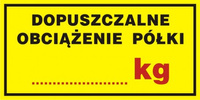 Znak Dopuszczalne obciążenie półki.....kg (PA034)