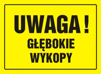 Znak Uwaga! Głębokie wykopy na płycie HIPS (OA007)