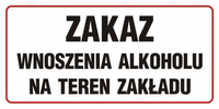 Znak Zakaz wnoszenia alkoholu na teren zakładu na płycie PCV (NE013)