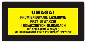Znak Uwaga! Promieniowanie laserowe przy otwarciu na Folii Samoprzylepnej (KB013)