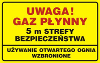 Znak Uwaga! Gaz płynny. 5m strefy bezpieczeństwa- używanie otwartego ognia wzbronione (JD018)