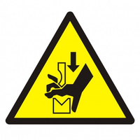 Znak ostrzeżenie przed zgnieceniem dłoni między prasą i stopą na płycie PCV (GDW030)