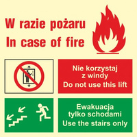Znak Zakaz korzystania z windy w razie pożaru (prawostronne) (AC098)