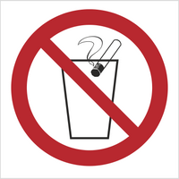 Znak Zakaz trzymania ręką kubków przy zalewaniu wrzątkiem na Folii Samoprzylepnej (644)