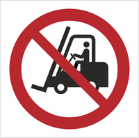 Znak zakaz ruchu urządzeń do transportu poziomego na płycie PCV (P06) (ISO 7010)