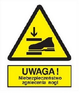 Znak Uwaga! Niebezpieczeństwo zgniecenia stopy na Folii Samoprzylepnej (344)
