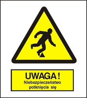 Znak uwaga niebezpieczeństwo potknięcia się na Folii Samoprzylepnej (313)