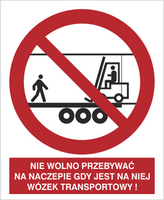 Znak zakaz przebywania na naczepie gdy jest w środku wózek transportowy na płycie PCV (650)