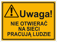 Znak uwaga nie otwierać na sieci pracują ludzie na płycie HIPS (319-55)