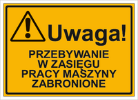 Znak uwaga przebywanie w zasięgu pracy maszyny zabronione na płycie HIPS (319-47)